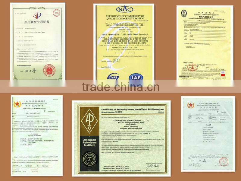 Our company is equipped with first-rate automatic Performance-testing System, gaining the Certificate of ISO: 9001-2008, American Petroleum Institute (API), CCS certification and other security certificates. Thanks to our 40 years matured techniques, advanced equipment, precise testing instruments and modern management system, we possess good reputation from domestic and abroad.