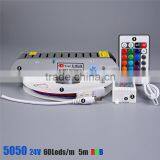 5meters 150led 36w 12v IP65 Waterproof Flexible LED Strip Light With 24keys IR RGB Remote Controller