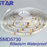 SMD 5730 LED Strip Waterproof IP65 DC12V 60leds/m, New LED Chip 5730 Brighter