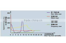 The figure shows the comparison of several different start-up mode, we can see that the variable frequency driven compressor accpletely showly to star, is more stable than the soft-star, competely avoid the current peak, start variable frequency running when it comes to the rated pressure. then adapt to the operating environment of lack electricity at the largest extent.