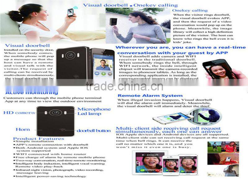 The doorbell has alarm and mobile monitoring function, protect your home safety effectively, reduce your worried.