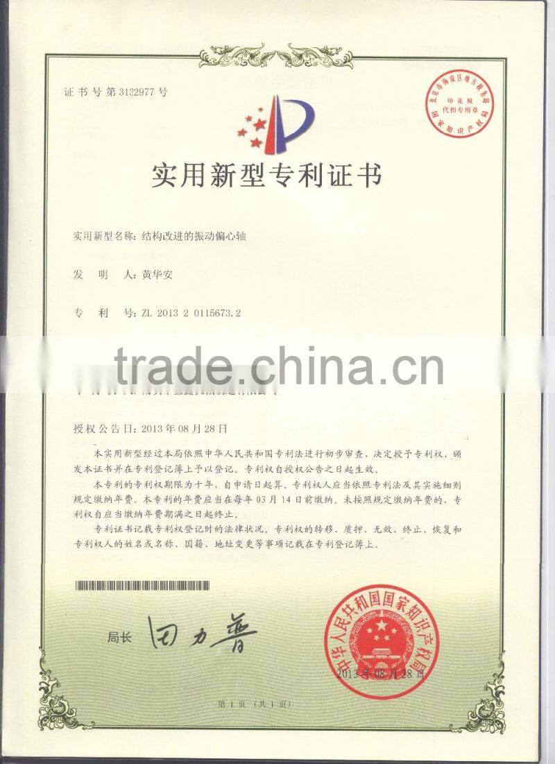 3) There are tow motors driving the vibrator through the transmission shaft without the inconsistency of double motors, facilitating the power conservation.