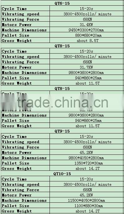 2. QT Series Concrete / Fly ash /cement Brick Molding Machine high output Main Technical Data