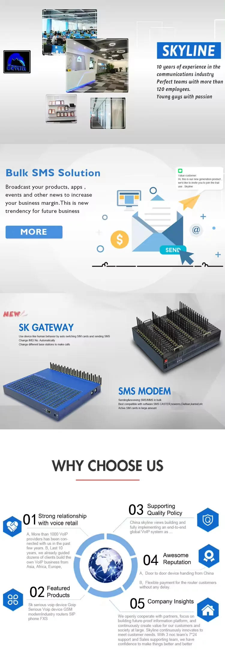 1. Provide sms modem, sms gateway, goip, with free tech support. 2. Provide sms trafiic to make money.