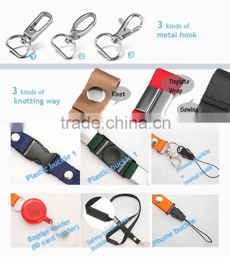 | Accessory | 3 kinds of metal hook, 3 kinds of knotting way, Bagdge holder/ID card holder, Safety break-away buckle/Plastic buckle/Phone buckle Others can be customizable |