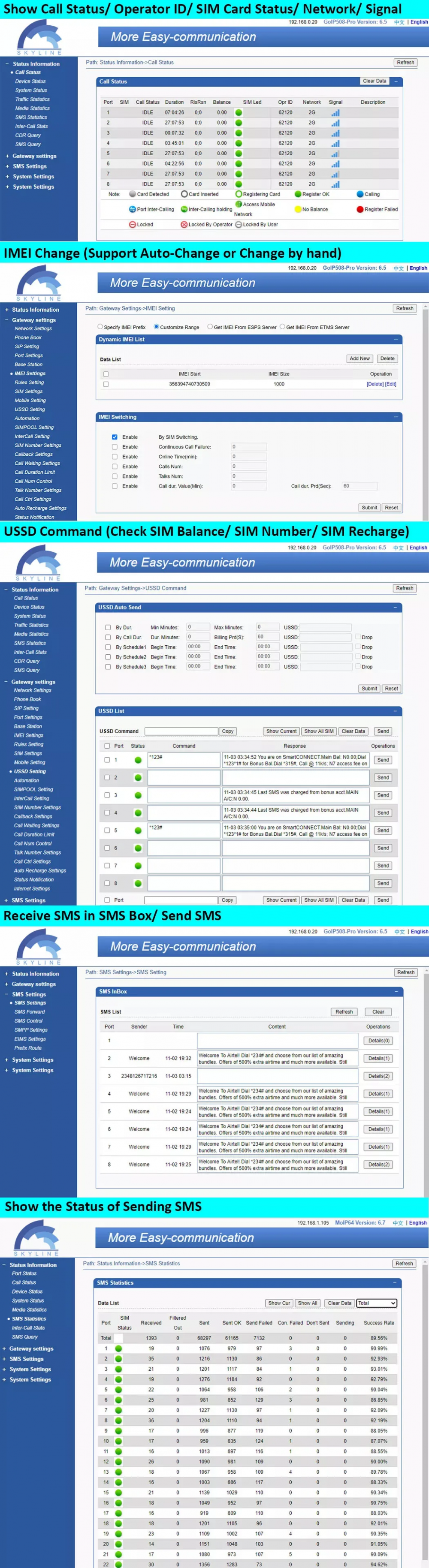 Solution: Our SK gateways can be set to change IMEI No. Automatically to avoid blocking issues.