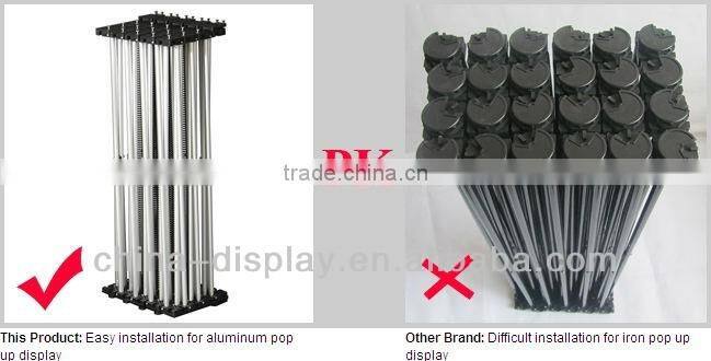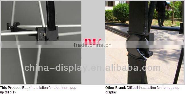 The pop up display is feature straight,oxidated aluminum frames.High quality printed graphic, perfect for logos and company branding with super smooth tensioned graphics.