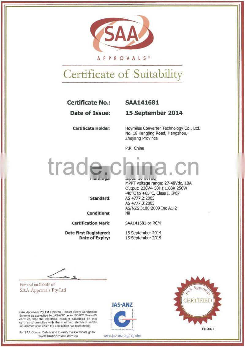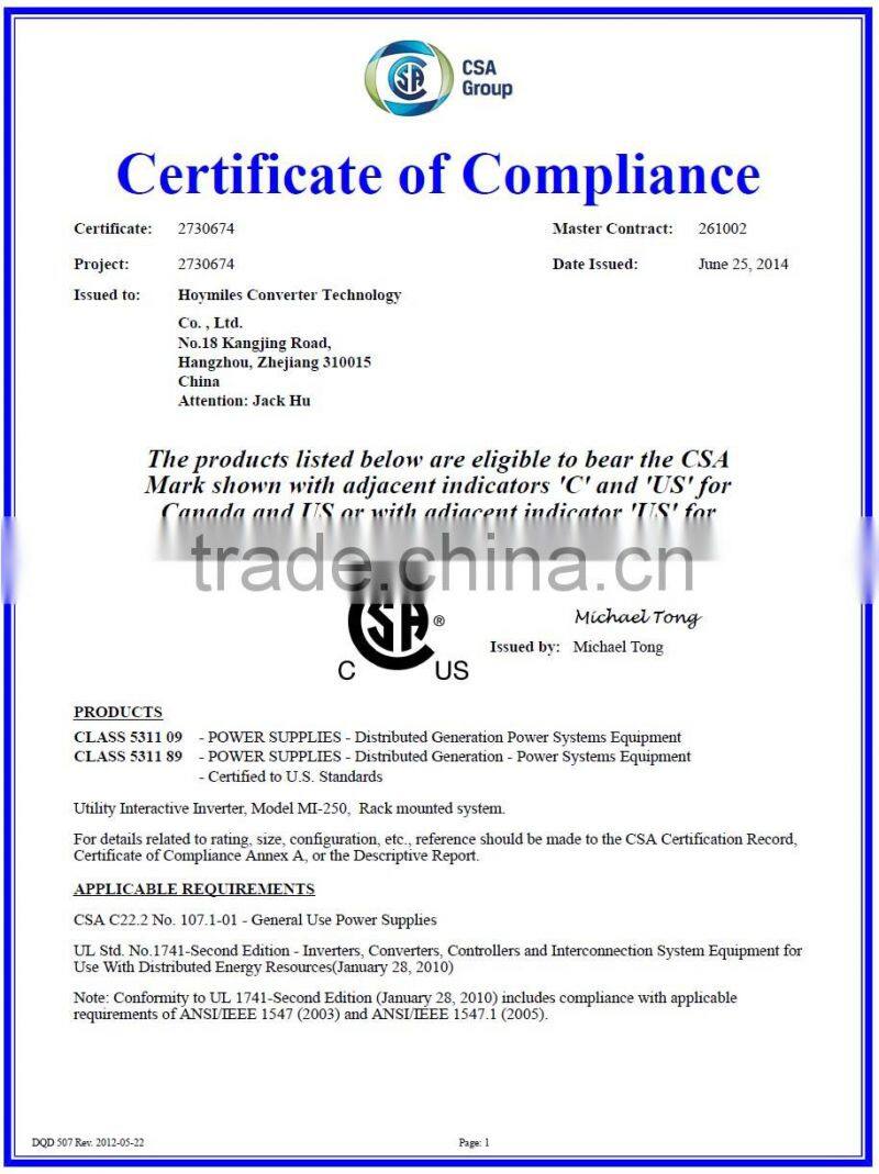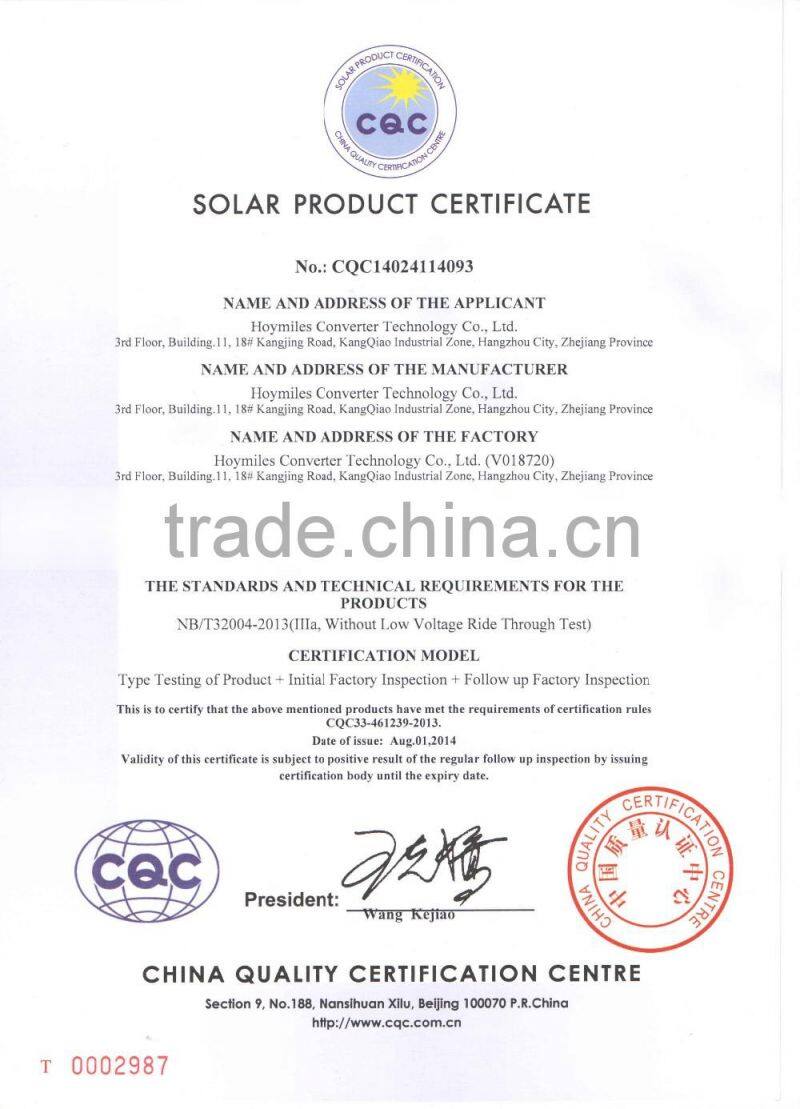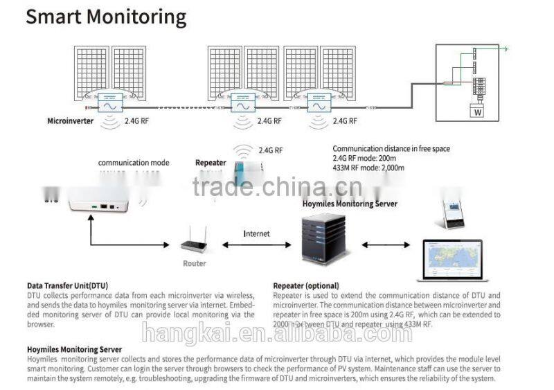 Hoymiles Converter Technology Co,.Ltd is a subsidiary of Hangkai Group, Homiles brand engaged in developing photovoltaic technology, providing professional solutions and full sets of electrical equipment to customers of photovoltaic powegeneration systems, commercial and industrial photovoltaic power stations, and large scale ground power plants; we also provide professional equipment and technoloyg support to large solar plants with our innovative modularized photovoltaic inverter technology, ensures a safer, smarter and more efficient solar power generation system for the distributed systems. The projects we have completed can be found in almost all major cities and provincess across China and our microinverters are exported to over 30 countries including USA,Australia, Germany, France, Netherlands,Italy, South Korea,Brazil, Mexico,and India.