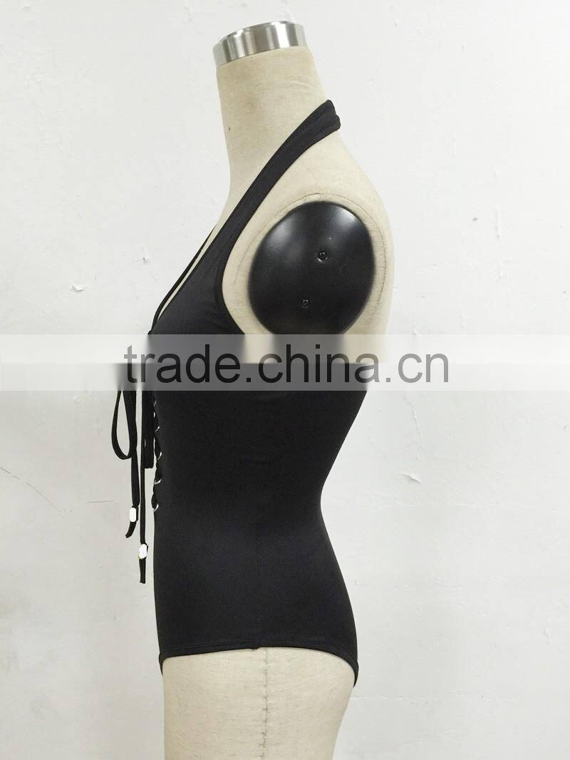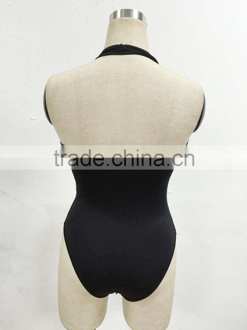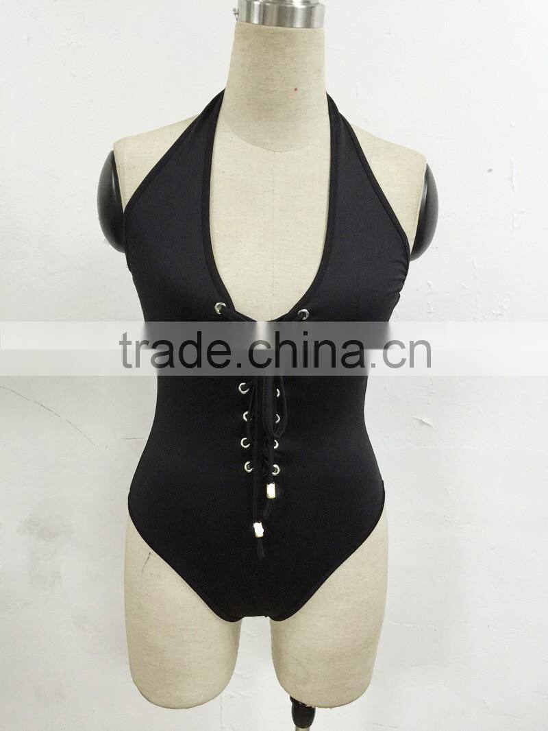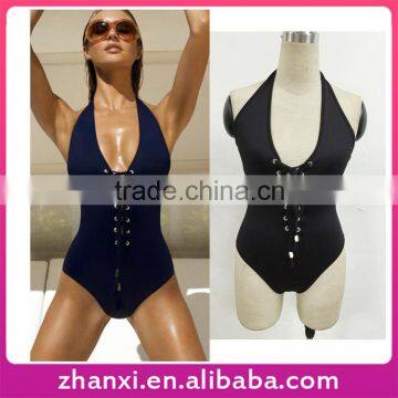 Sexy girls one piece halter swimwear bandage 2016 plain bathing suits swimsuit