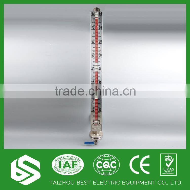 It can be used to measure level of various vessels in the shape of tower, kettle, groove and ball as well as boiler furnace. It can be used in complex conditions, such as highsealing, leak prevention, high pressure, high temperature and corrosion. In the measurement process, no measurement blind area. It strikingly displays the level and has a wide measurement range. Compared with traditional glass plate level gauge, it is safer, more reliable, more advanced and more practical. The most obvious characteristic is the complete isolation of liquid medium and indicator so it can be used safely, reliably and durably in any case.