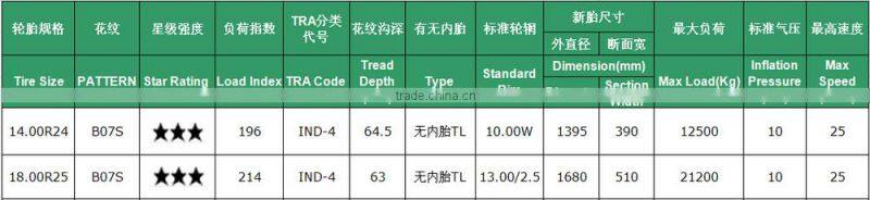 Home > Products > Radial OTR Tyre > Hot Sale All Steel Radial OTR Tire 14.00R24 Made In China