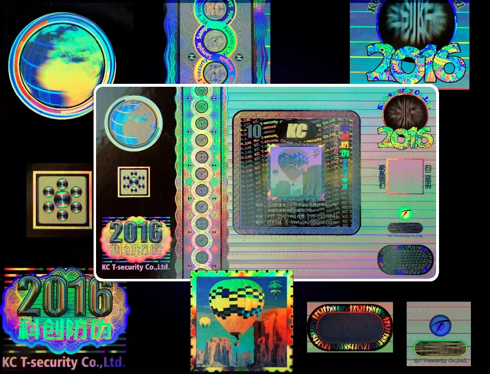 We are a leading manufacturer of security holograms of all types - Hologram hot stamping label, Hot stamping foil, Hologram hot stamping foil label, Hot stamping Hologram label, hot stamping hologram, Hologram Sticker, Hologram Labels, 3D Hologram Sticker, Laser Sticker, Hologram Security label, Holographic Labels, Holographic Packaging, Instant Holograms, Scratch Holograms, Shrink Sleeves Labels, and 2d & 3d holograms. Basically, KC T-Security Co.,Ltd. is a fully integrated hologram manufacturer - everything from Nickel Hologram mastering, to converting, printing, and finishing - is done at our state of the art plant located at ShenZhen,China