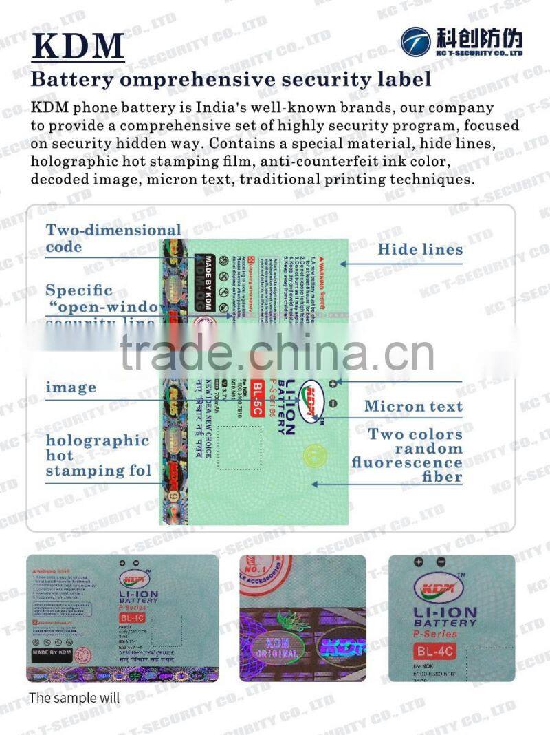 We are a leading manufacturer of security holograms of all types - Hologram hot stamping label, Hot stamping foil, Hologram hot stamping foil label, Hot stamping Hologram label, hot stamping hologram, Hologram Sticker, Hologram Labels, 3D Hologram Sticker, Laser Sticker, Hologram Security label, Holographic Labels, Holographic Packaging, Instant Holograms, Scratch Holograms, Shrink Sleeves Labels, and 2d & 3d holograms. Basically, KC T-Security Co.,Ltd. is a fully integrated hologram manufacturer - everything from Nickel Hologram mastering, to converting, printing, and finishing - is done at our state of the art plant located at ShenZhen,China. For more information, please feel free to link our Website directly at: