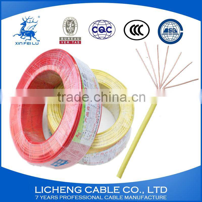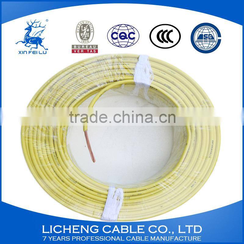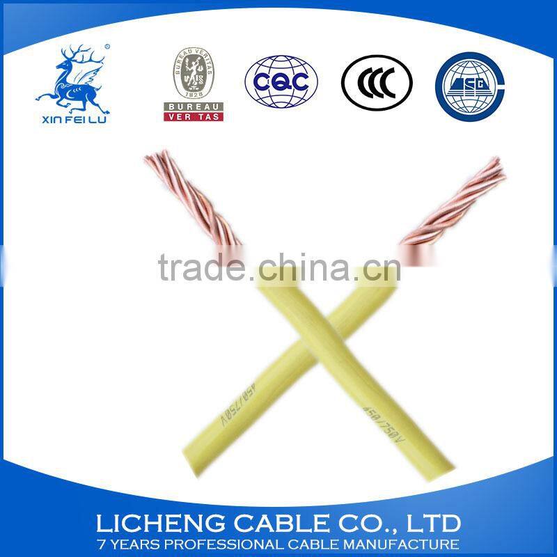 Yellow House wiring copper core PVC Insulated flexible wire and cable -BVR(6mm2)