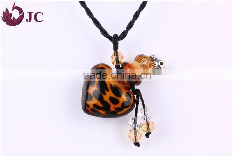 Leopard Grain Peach Heart Shape Aromatherapy Essential Oil Necklace Wholesale