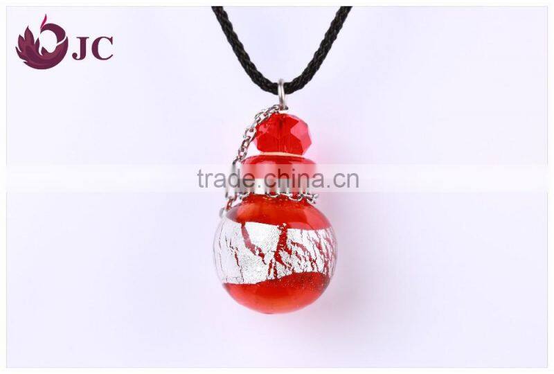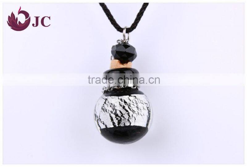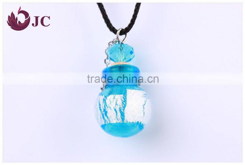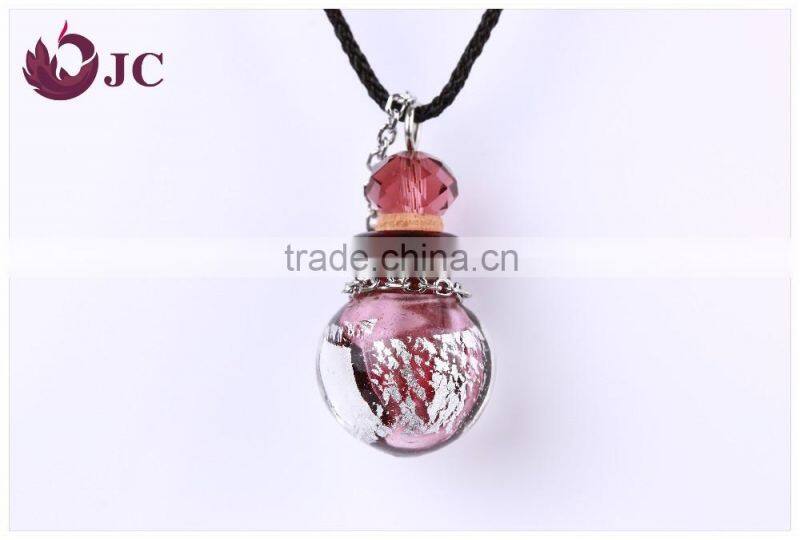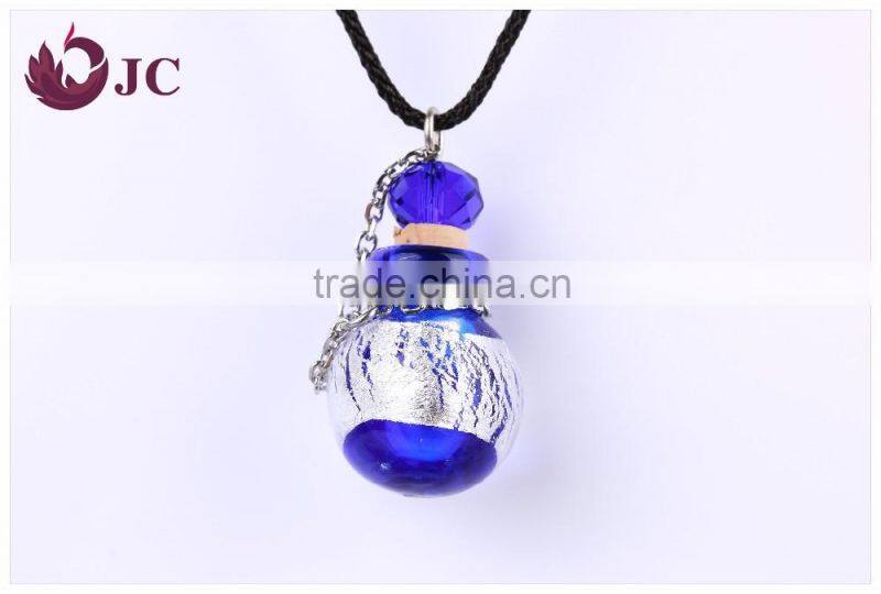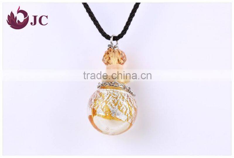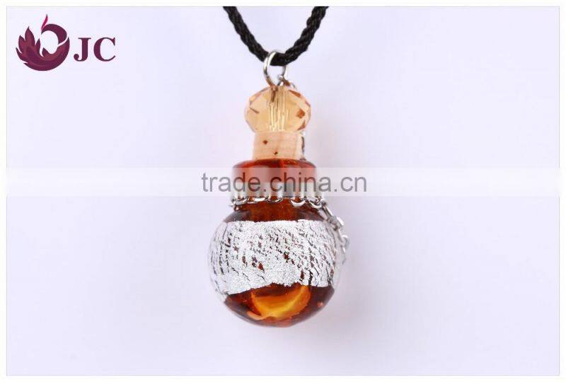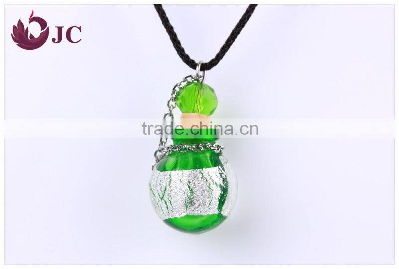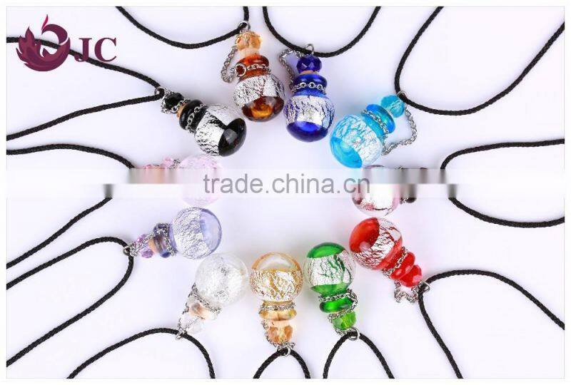 Flat Round Shape Murano Coloured Glaze Essential Oil Fragrance Perfume Bottle Pendant Necklace for Wholesale