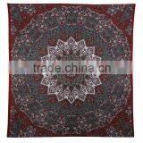 Indian Mandala Round Printed Tapestry Indian Handmade Maroon Floral Screen Print Hippie Tapestry Supplier In India