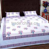 New Pattern Cotton Bed Sheet Flower Printed Hand Block Home Textile 100% Fabric Bed Sheet