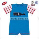 Customed Design Color 100% Cotton Baby Romper With Striped Sleeve for Toddles