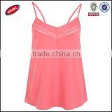 Pink 100% Polyester v Neck Women Lace Sleep Vest With Adjustable Stripe Made in China