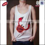 Oem Supplier Drop Armhole Crab Applique Mens White Cotton Vest
