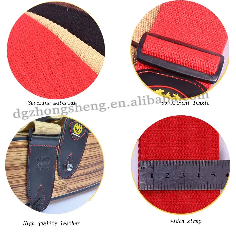 Promotional Cheap Price Custom Logo Printed Cotton Soldier Guitar Strap With Leather Ends