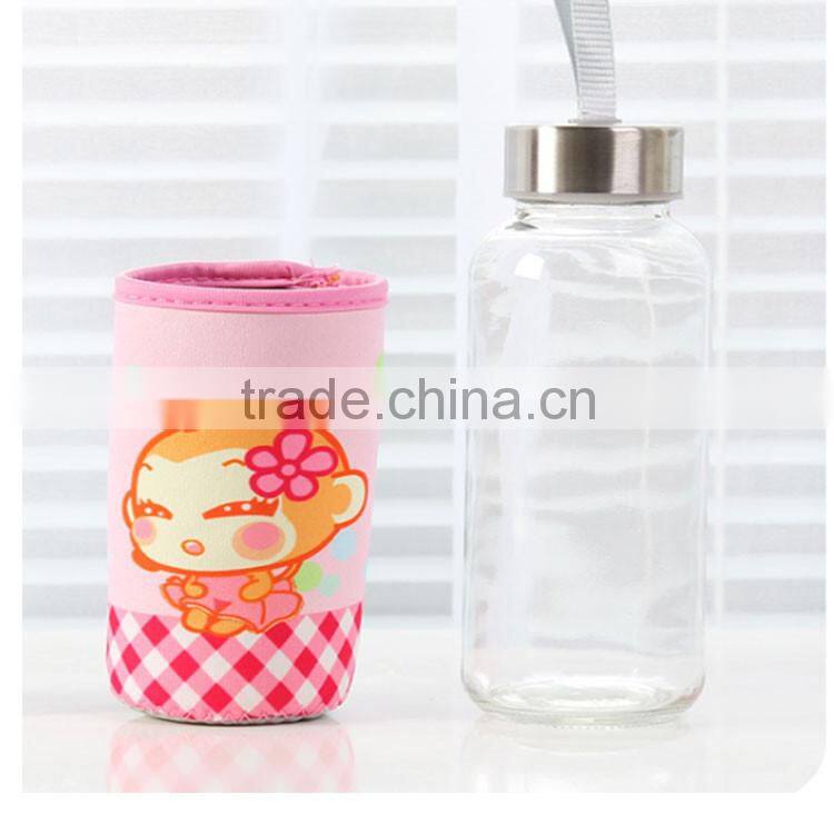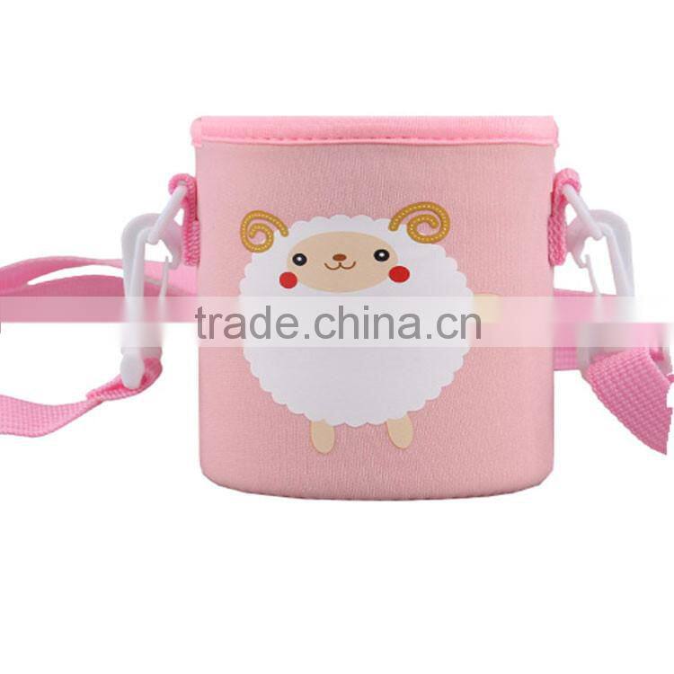 Fashion Lovely Custom Logo Cartoon Neoprene 500ml Shoulder Water Bottle Holder Plastic Bottle Sleeve for the Girl