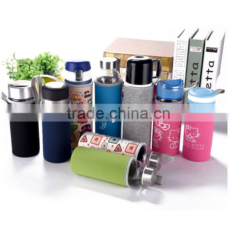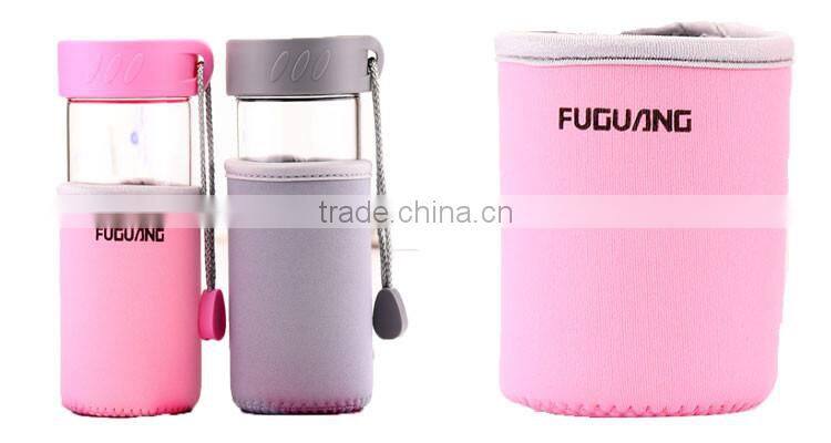 Stylish Top Level Quality Environmental Borosilicate Glass Water Bottle With Colorful Neoprene Sleeve