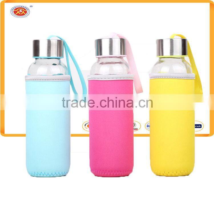 Stylish Top Level Quality Environmental Borosilicate Glass Water Bottle With Colorful Neoprene Sleeve