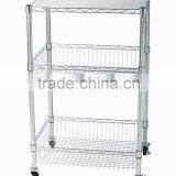 3 Tier Chrome Wire Shelving Rack With Wheels