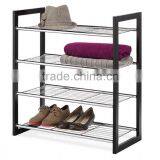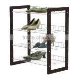 Wooden Frame 4 Tier Metal Shoe Rack Design