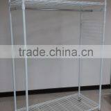 3 Tier Wire Wardrobe Adjustable Shelf Storage With Hanging Rod Powder Coating White