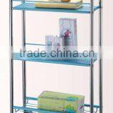 3 Tier Blue Mobile Metal Rack With Wheels Mesh Cabinet Bathroom Furniture