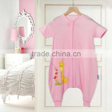 100% cotton Baby short sleeve sleeping bag for spring and summer fall pink style