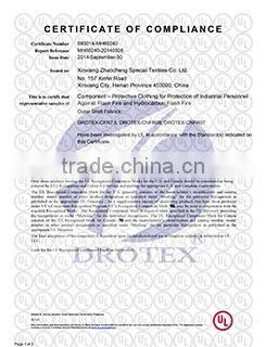 Xinxiang Zhuocheng Special Textile Co.,Ltd is a professional enterprise to produce special functional protective fabric.Our main products include flame retardant fabric, acid-alkali resistant fabric, anti-static fabric, oil-water repellent fabric, anti-UV fabric, water-proof & air-permeable fabric and multi-functional composite fabric and Safety Workwear.