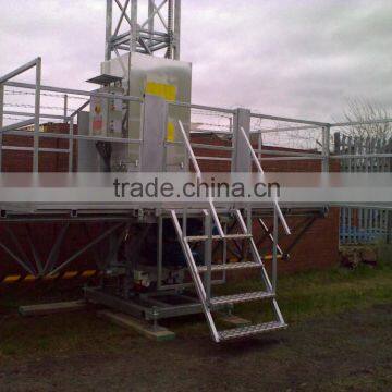 Technical Specification: -Max Weight 250m -Platform width 1,3m -Extensions length 1m -Distance between ties 6m/9m -Mast Section height and weight 1,5m 41 KG -Length/weight platform sections 1,5m 103Kg/1m 70 Kg -Weight of drive unit with base 762 Kg -Lifting Speed 6m/min -Three-phase power supply 50/60 Hz 230/400 V