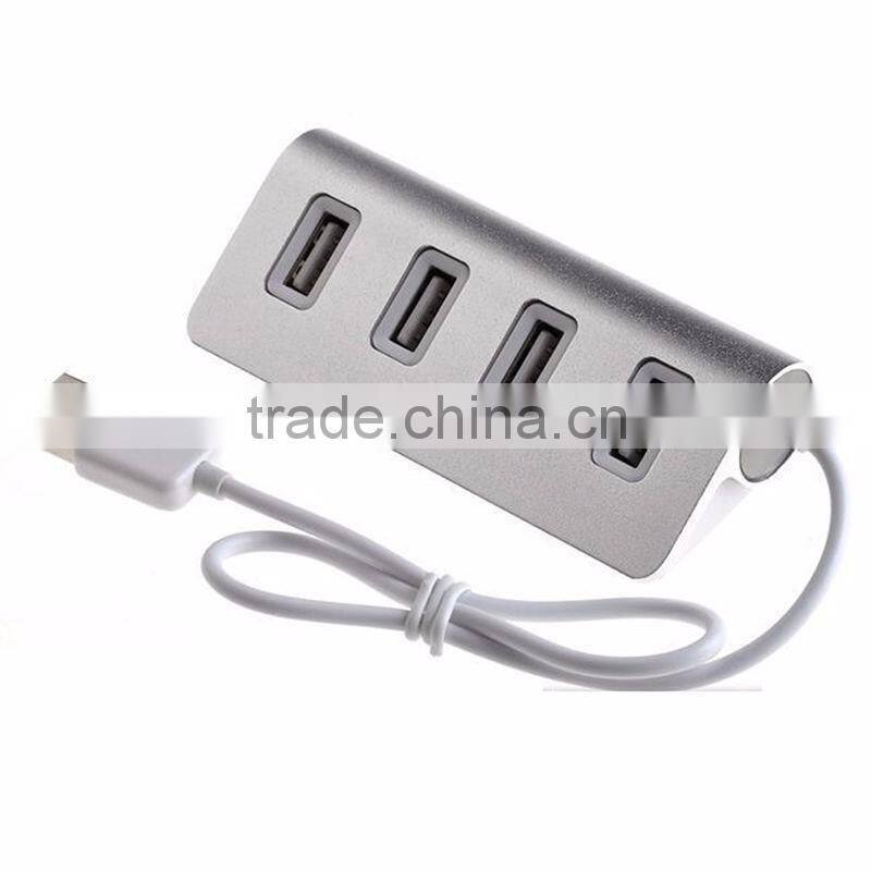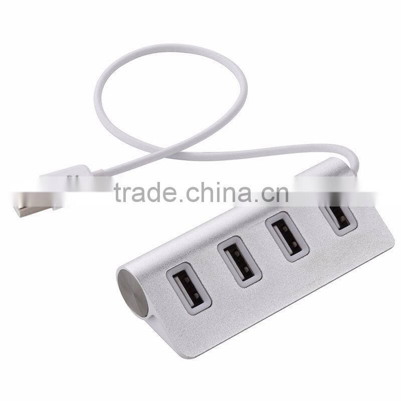 High-end Mini Silver Metal 4 Ports 2.0 USB Hub Aluminium