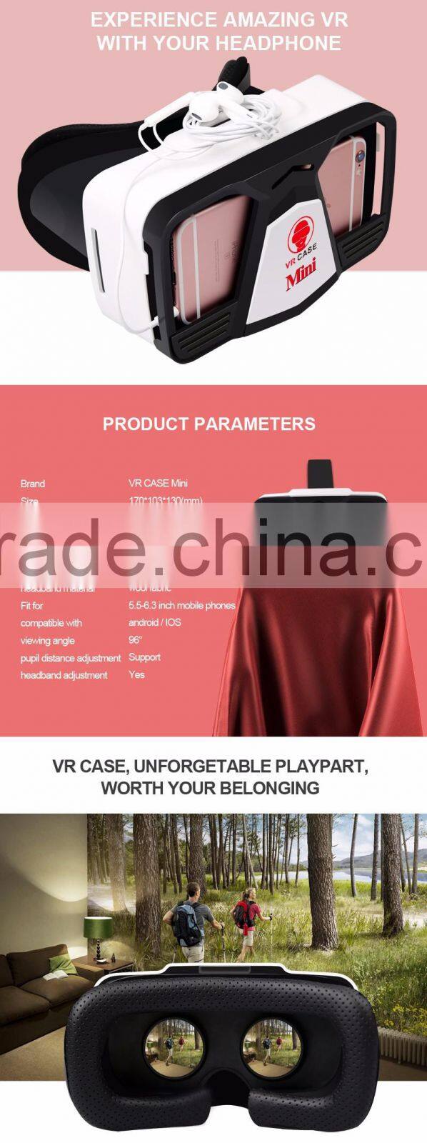 VR CASE MINI, pack light, colorful no longer single. Lighter and more portable but support large screen size . She breaking the traditional design of comfortable head strap, super clear fixed-focus lens no need the tedious adjustable pupillary distance. VR CASE - If there is any possibility … We will be better !