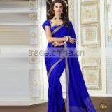 Impeccable Blue Crepe Silk Saree/best Designer Sarees Online Shopping