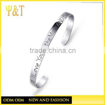 Custom 925 Sterling Silver Engraved Cuff Bracelet Wholesale Message Inspire Cuff Bangle With Hand Stamp (AB-014)