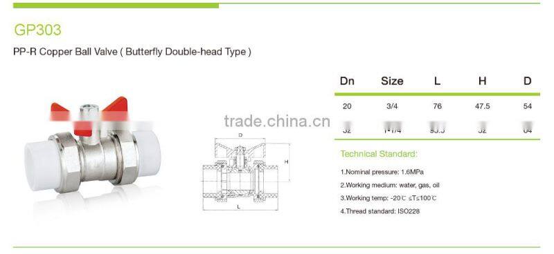 Butterfly Double-head Type PP-R Copper Ball Valve