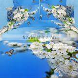 Four Six 3D Flat Screen Blue Butterfly Flower 6pcs Bedding Set