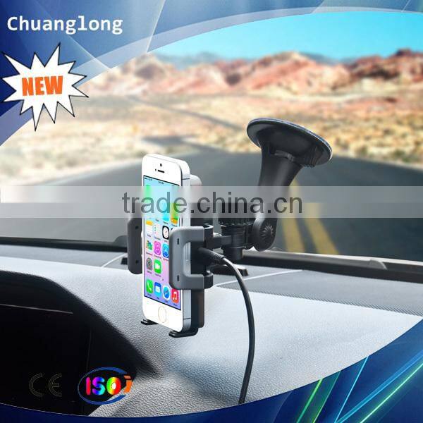 Dual adjustable Qi standard windshield car cellphone holder with charger for 3.5-6 inch smart phone