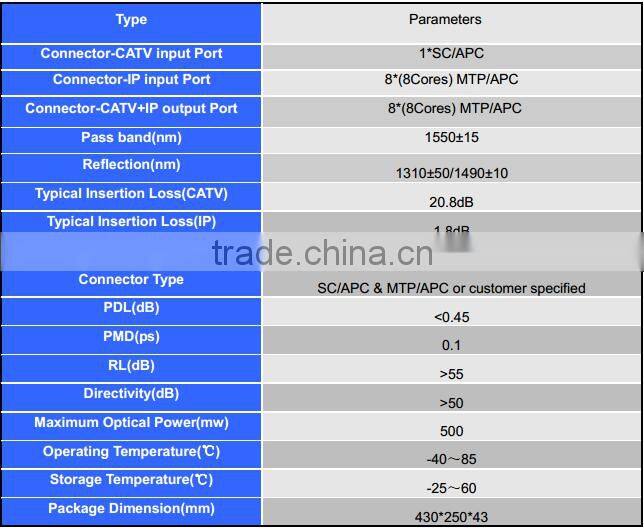 ¨ MTP Connector 8*8cores for CATV+IP output
