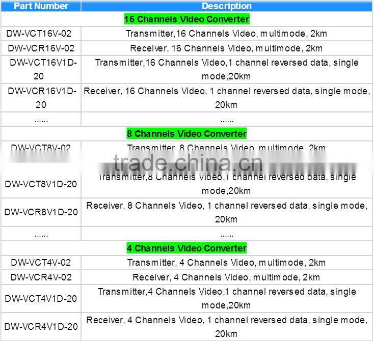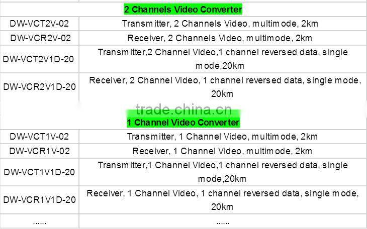 digital video, 1~4 channels of bi-directional data and audio, 4 E1 and one 100M Ethernet over a single fiber
