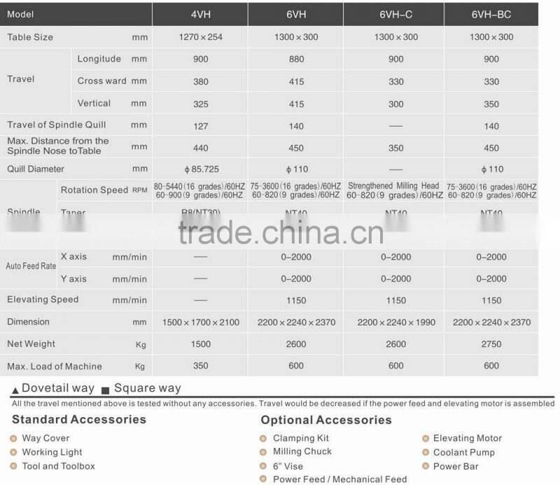 Horizontal and Vertical CE Quality MILLING MACHINE 6VH