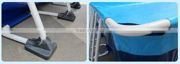 2. Laminated PVC pool liner and Stainless frame support(such as outer diameter and thickness of horizontal pipe:48mm and 2.0mm; material:0.9 mm PVC)