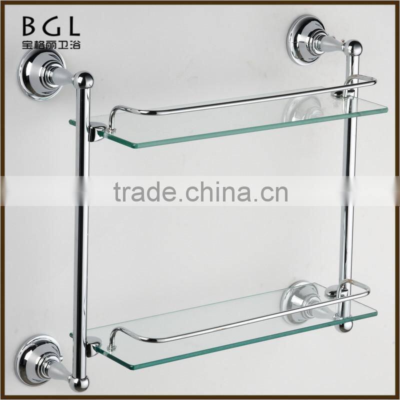 American style Direct Marketing Factory Zinc alloy Chrome plated Bathroom accessories Wall mounted Glass Tier Shelf