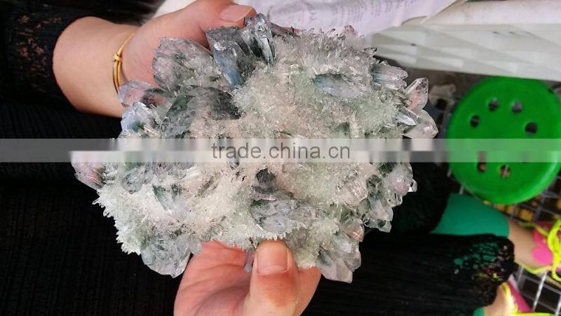 High Quality Natural Green Ghost Phantom Quartz Crystal Cluster for Decoration