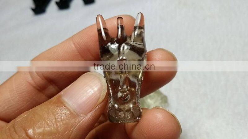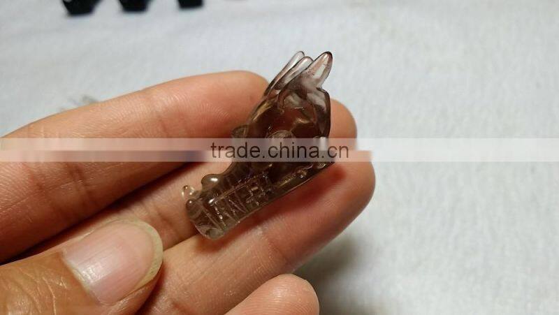 Wholesale Beautiful Hand Carved Natural Smoky Quartz Crystal Dragon Skull for Decoration